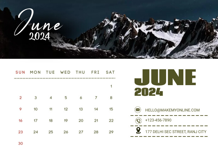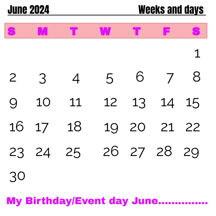 JUNE CALENDAR 2024 NEW YEAR Template | PosterMyWall